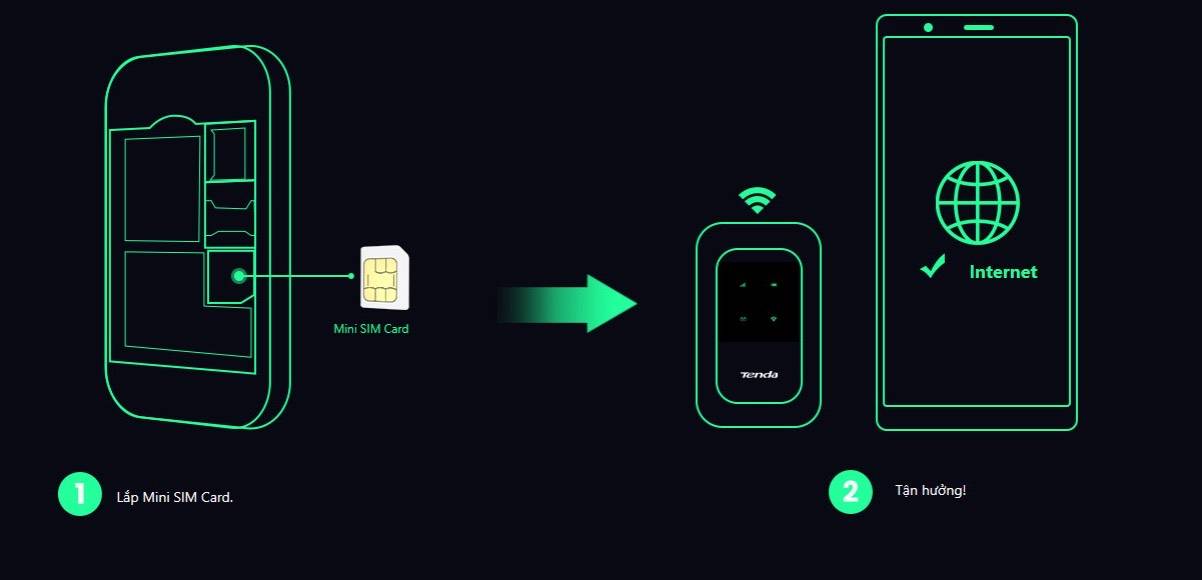 Tạo điển truy cập Wi-Fi và chia sẻ kết nối lên đến 10 thiết bị như Smartphone, Máy tính bảng, đồng hồ thông minh,...