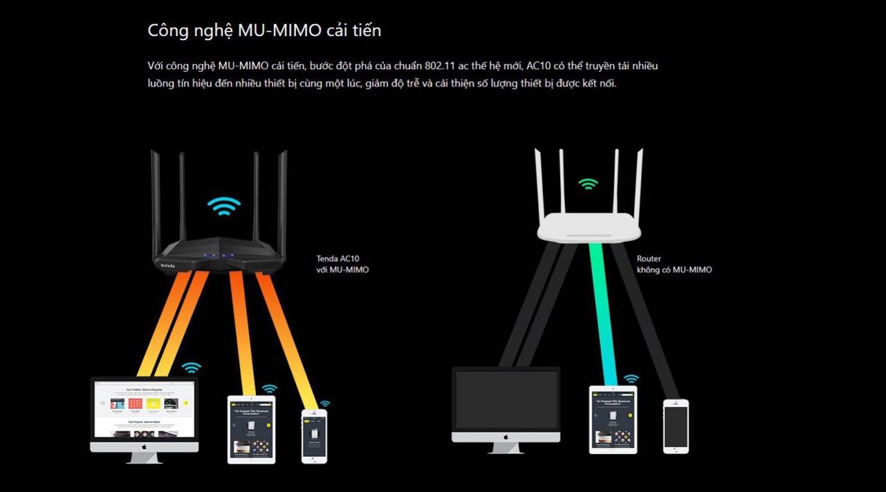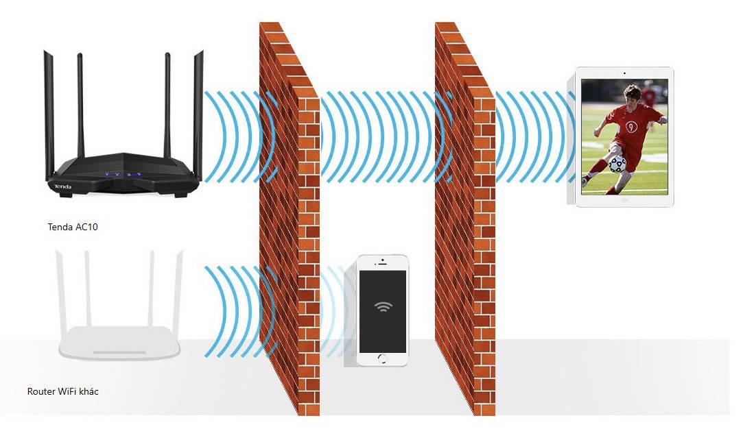 Với chuẩn sóng 2.0 802.11ac thế hệ mới, AC10 cung cấp tốc độ dữ liệu băng tần kép đồng thời cao tới 1167 Mbps. Công nghệ tăng cường tín hiệu không dây trên cả hai băng tần 2,4 GHz và 5 GHz mở rộng phạm vi phủ sóng WiFi. Công nghệ Beamforming + tăng khả năng xuyên tường.