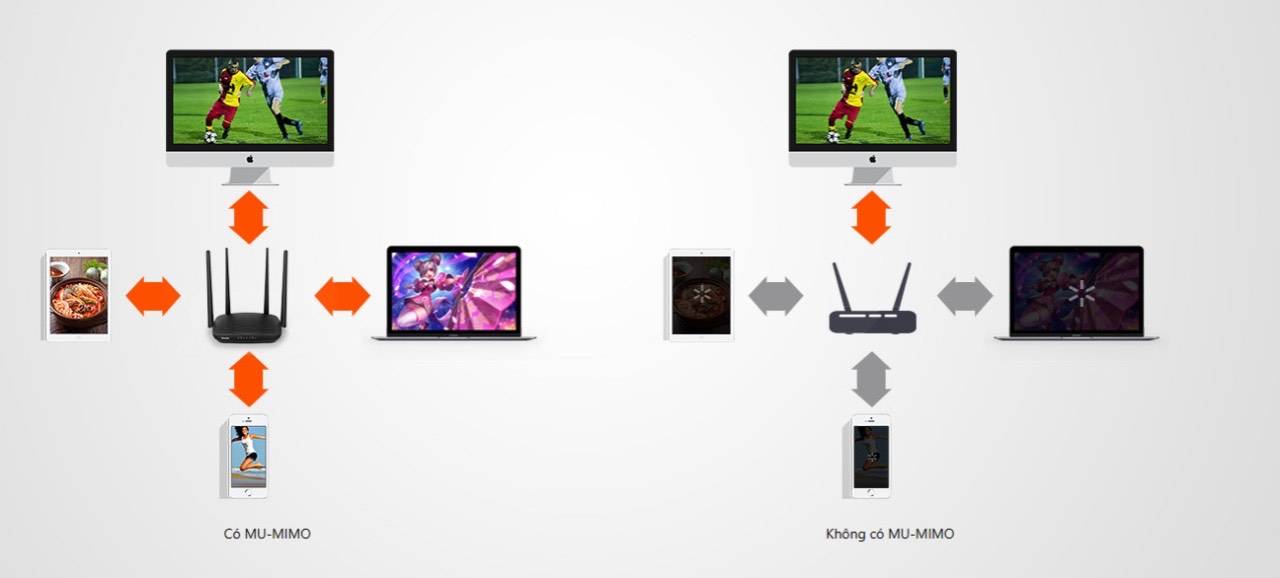 Ứng dụng công nghệ MU-MIMO giúp tăng số lượng thiết bị kết nối đồng thời với Router WiFi.