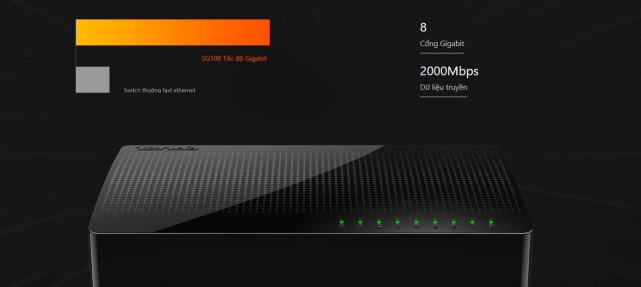 - 8 cổng tốc độ 1000Mbps tự nhận diện kết nối