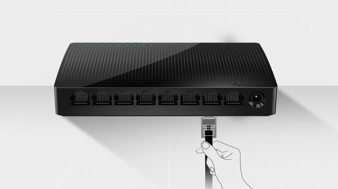 Tenda SG108 có thể để bàn hoặc treo tường, không cần cấu hình, chỉ cần cắm và sử dụng.