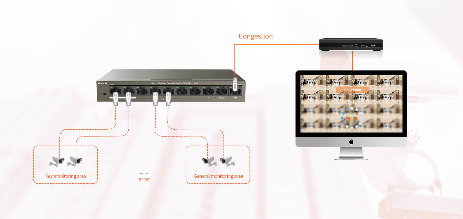 Cổng 1-2 hỗ trợ tính năng QoS, luôn được ưu tiên nếu gặp tình trạng nghẽn mạng, đảm bảo việc giám sát tại các khu vực quan trọng luôn được duy trì ổn định.