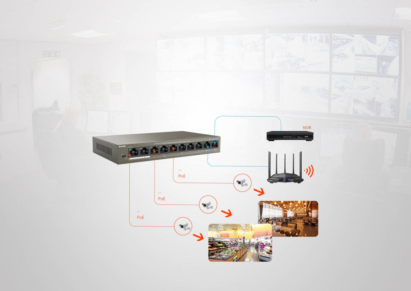 TEF1110P-8-63W trang bị 2 cổng Uplink cùng 4 cổng PoE hỗ trợ chuẩn IEEE 802.3at/af, giúp triển khai hệ thống CCTV dễ dàng và nhanh chóng. Với 2 cổng Uplink, bạn có thể kết nối đồng thời cả Router và đầu ghi NVR vào TEF1110P-8-63W , giúp hệ thống CCTV hoạt động ổn định liên tục trong thời gian dài. TEF1110P-8-63W hỗ trợ công suất tổng lên đến 58W, và tối đa 30W cho mỗi cổng, phù hợp cho các hệ thống CCTV quy mô nhỏ.