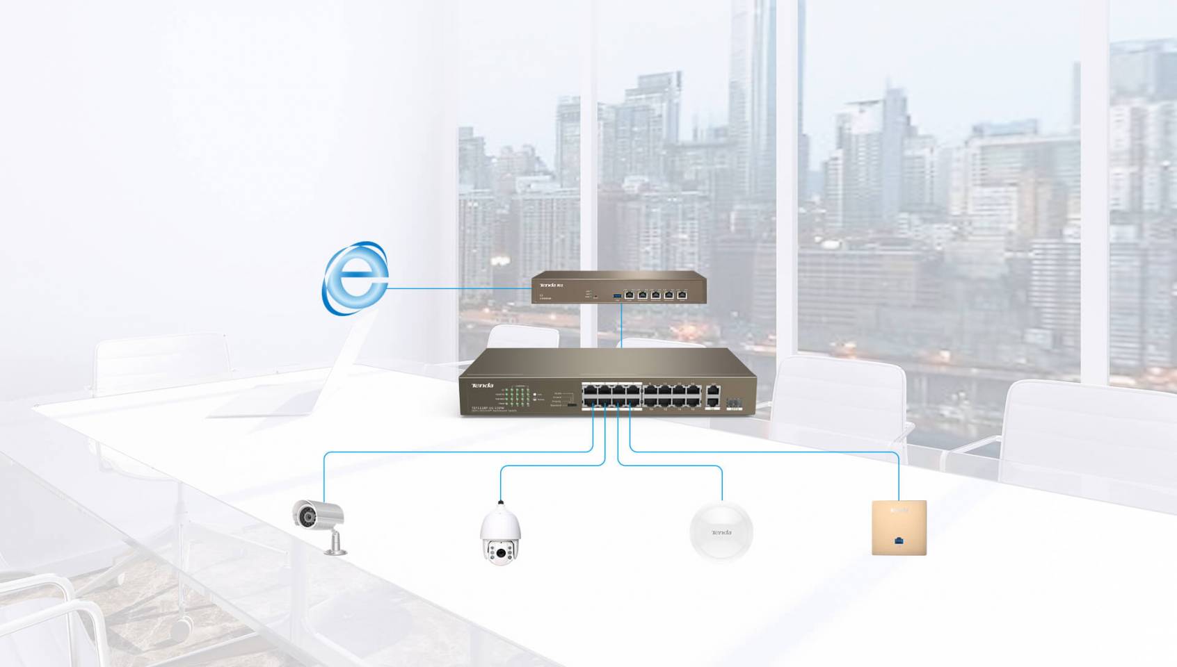 Với một khe cắm combo SFP 10/100/1000 Mbps, switch có thể đáp ứng nhu cầu hiện tại về băng thông uplink của mạng WLAN Gigabit và giám sát số chất lượng cao. Khi hoạt động với mô-đun quang TEG311SM của Tenda, switch hỗ trợ khoảng cách truyền tối đa lên đến 20km.