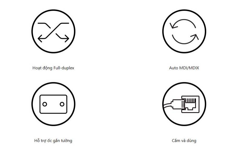 Các cổng LAN và đèn LED được đặt ở cùng bên, giúp dễ dàng theo dõi tình trạng của thiết bị hơn. Cổng nguồn và cổng LAN được đặt cùng bên, giúp giảm không gian khi lắp đặt, phù hợp với cả những hộp thiết bị nhỏ gọn nhất.