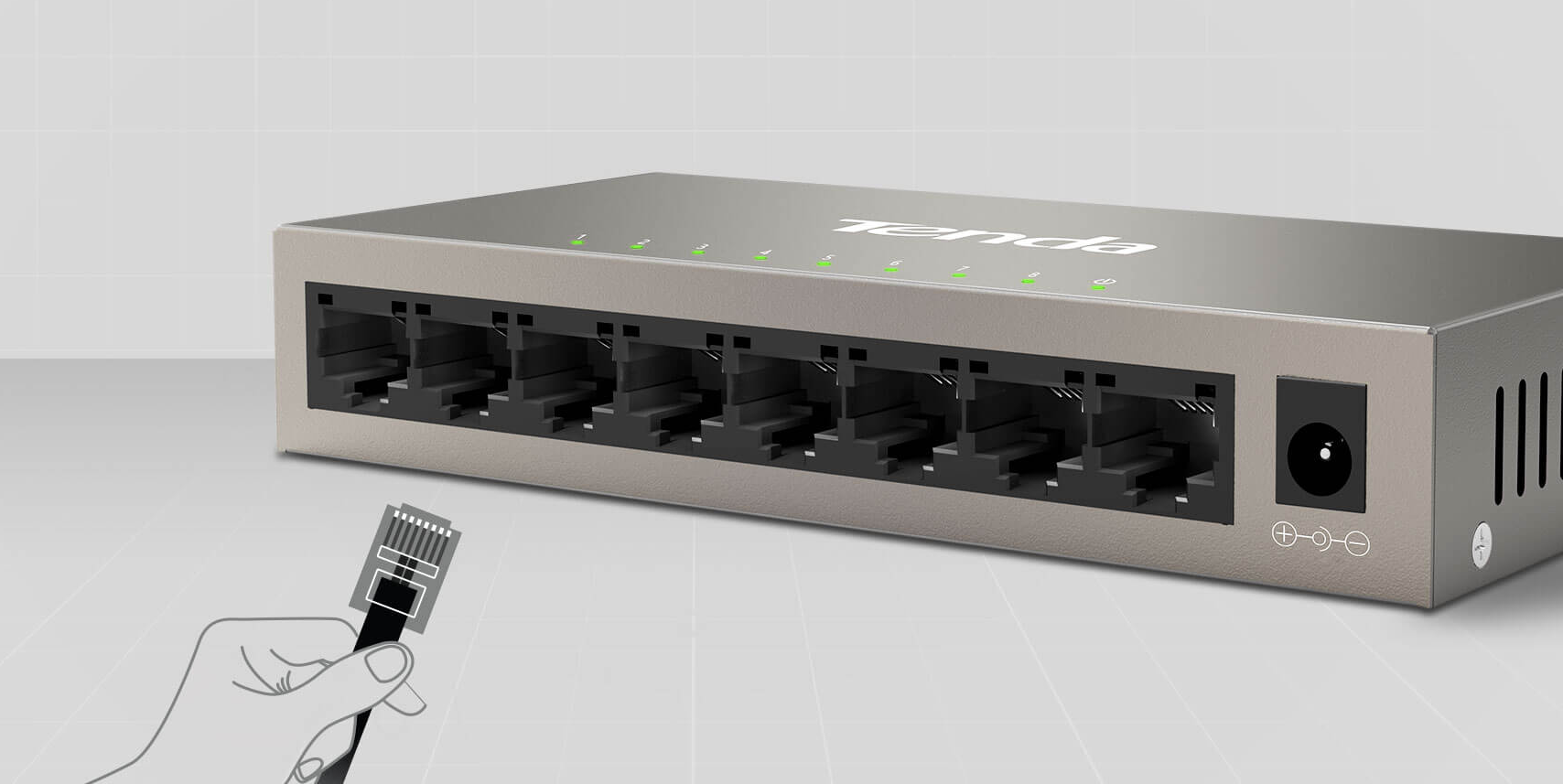 - Tenda TEG1008M hỗ trợ ngàm treo tường, tính năng cắm và dùng không cần cài đặt, dễ dàng sử dụng.
